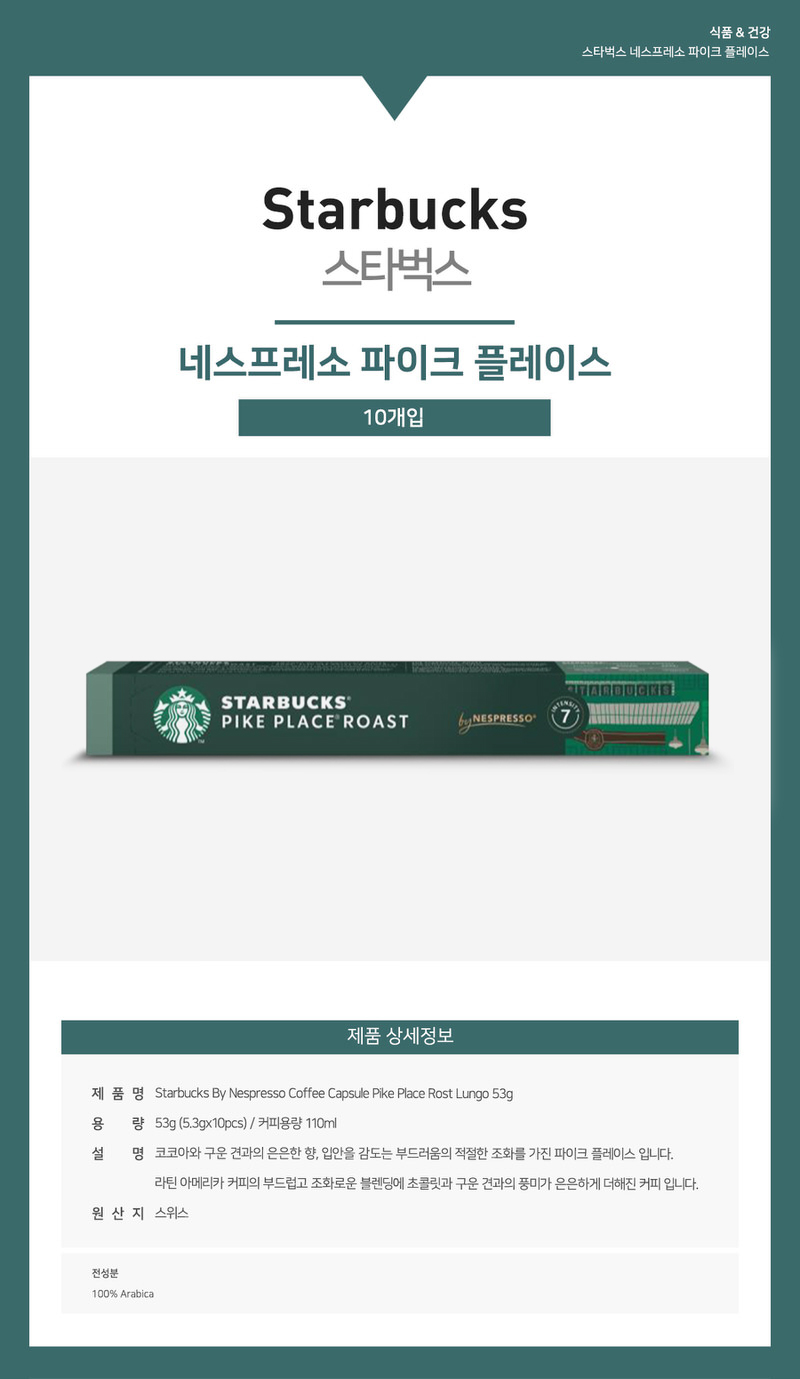 Starbucks By Nespresso Coffee Capsule Pike Place Roast Lungo 10pcs x10